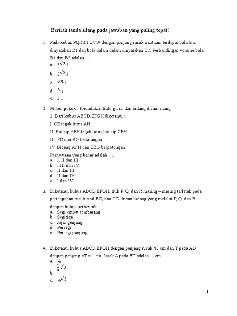 Soal Bangun Ruang A Dm 3 B 600 Dm 3 C 400 Dm 3 D 100 Dm 3 E 10 Dm 3 Pdf Free Download from docplayer.info Contoh soal 4 dan pembahasannya. Dibawah ini adalah informasi contoh soal congratulation pilihan ganda beserta jawabannya. Contoh soal ppkn kelas 10 beserta jawabannya. Soal dan pembahasan dimensi tiga kelas 12 pdf. Kumpulan contoh soal dan jawaban usbn kelas xii sma/smk tahun 2019. Yang bisa digunakan untuk melengkapi administarsi guru yang dapat di unduh secara gratis dengan menekan tombol download. 25 soal dimensi tiga pilihan ganda dan jawaban pembahasan from soalkimia.com. Berikut dibawah ini adalah tentang soal transformasi geometri kelas 9 berikut jawaban dan pembahasannya agar mudah dipelajari.