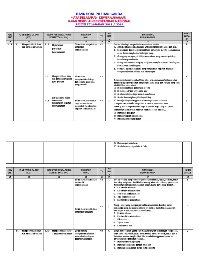 May 20, 2021 · contoh soal kewirausahaan kelas 10 semester 1 dan semester 2 kurikulum 2013 beserta kunci jawaban nya lengkap dan terbaru, soal pilihan ganda dan esay